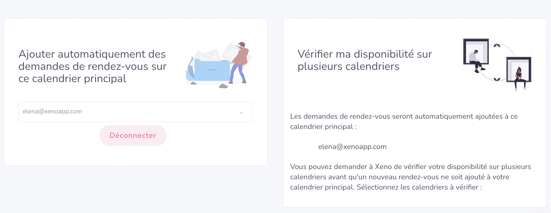 Avant de prendre rendez-vous sur votre calendrier principal, Xeno vérifiera vos disponibilités.