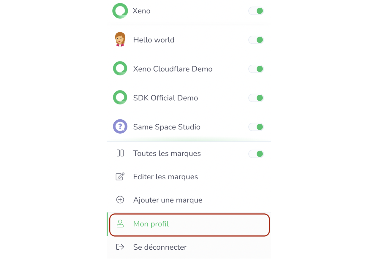 Cliquez sur le logoXeno en haut à droite de votre compte.